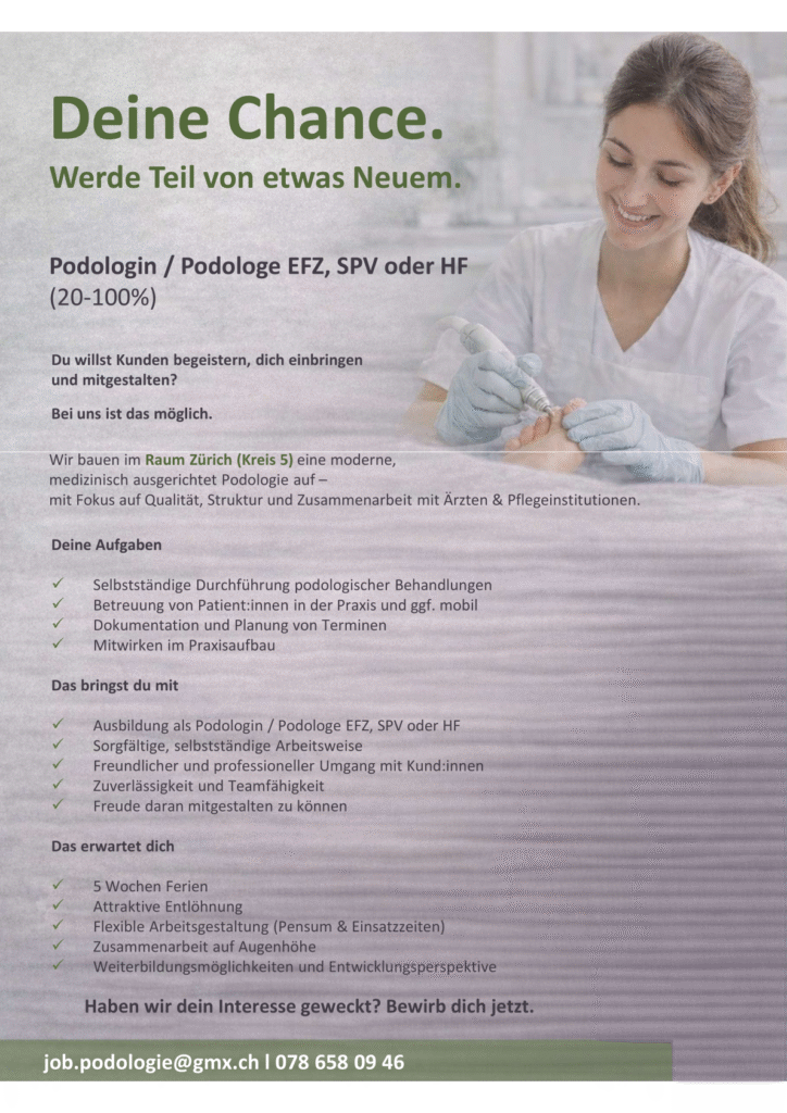 Podologin / Podologe EFZ, SPV oder HF (20-100%)