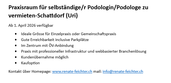 Praxisraum für selbständige/r Podologin/Podologe zu vermieten